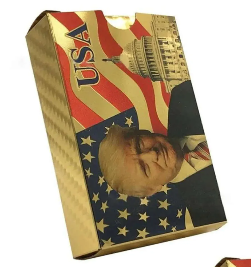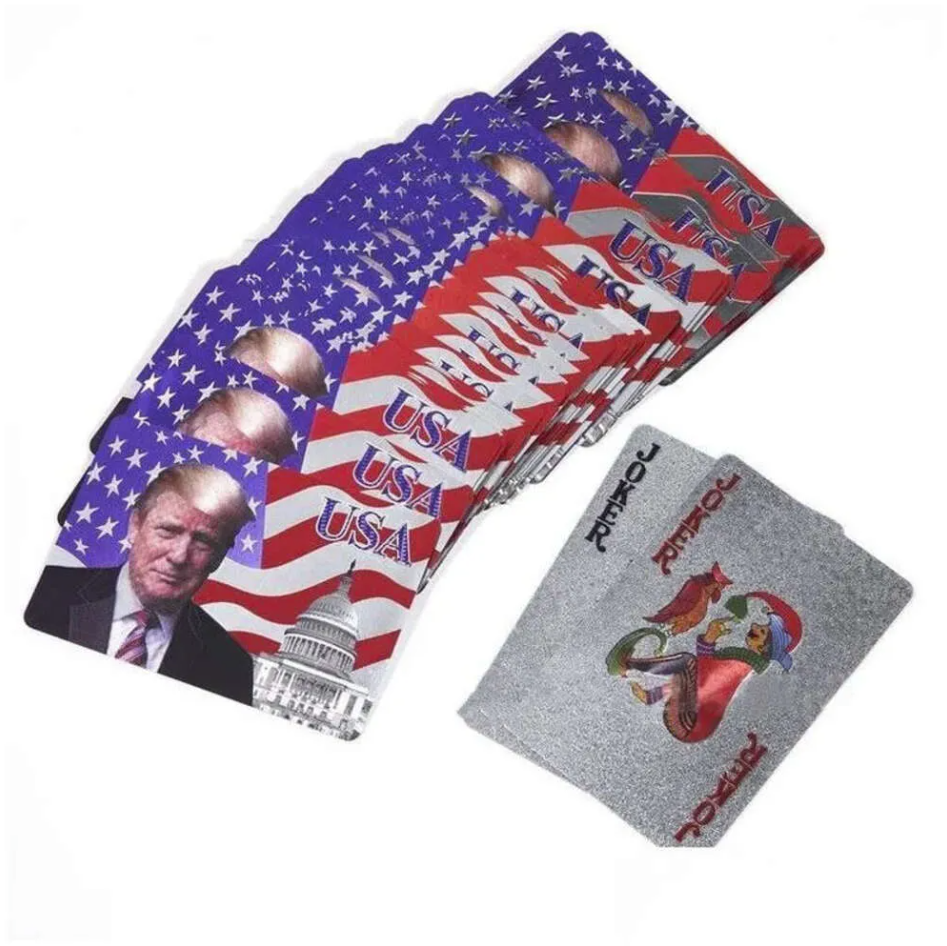Full deck of 54 cards (including 2 Jokers), each featuring custom Trump-themed designs